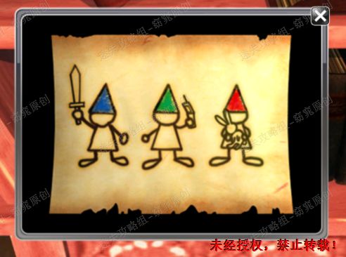9、双击卷轴,有三个图案。蓝色代表剑,绿色代表手机,红色代表娃娃 9.1