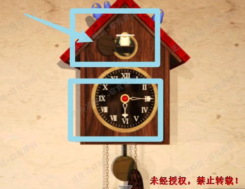 6、点击挂钟上面的红色按钮,退出来,在钟的上方出现一把钥匙 6.1