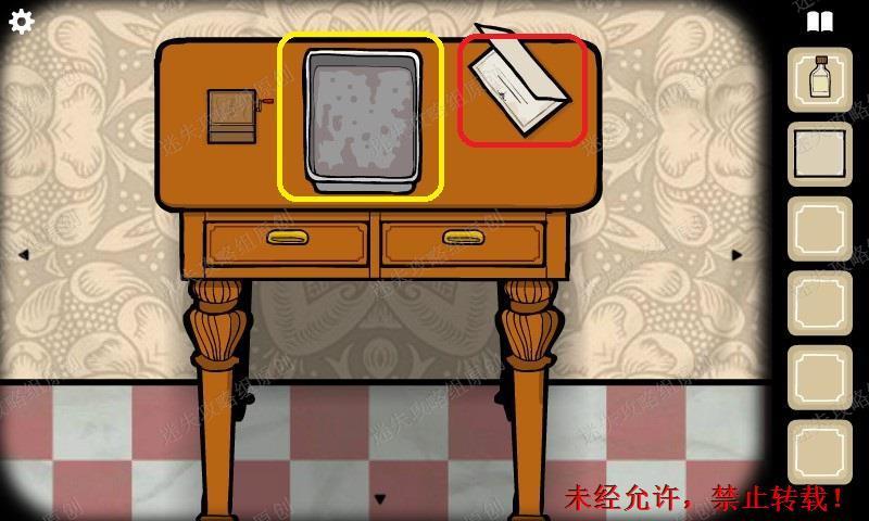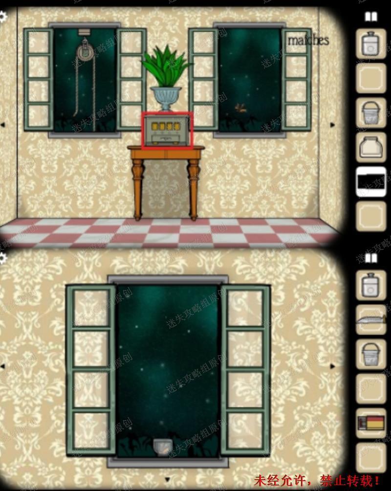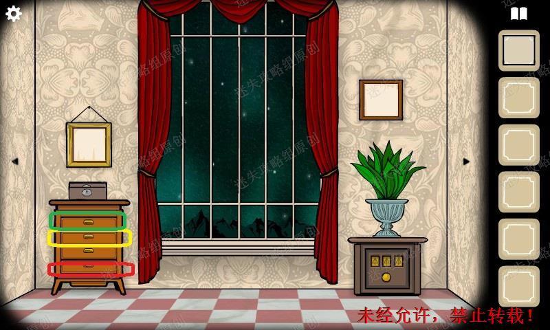 15、去往两扇窗处,中间华鹏下面的密码锁点击放大后输入对应密码:3531。得到里面的刀子。同时用玻璃瓶,等蝴蝶停在窗台上的时候抓住蝴蝶。15