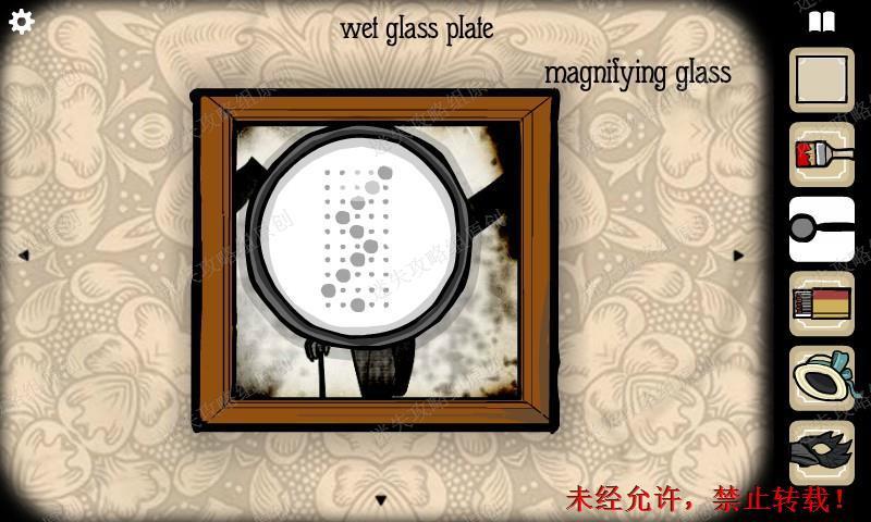 54、去照相机处,点击使用照相机,先放入湿版(湿玻璃板),然后用右边的红色按钮拍照。拍完后点击照片得到相片。然后随便找个白色相框装好照片,就能重新得到湿版。54