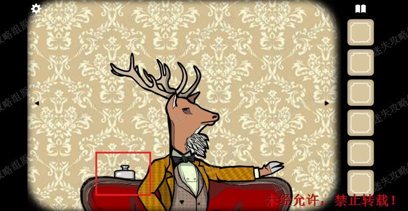 8、首先点击鹿先生,放大后拿走沙发背后的伏特加(Wodka)。同时点击边上墙上的图纸,记住印章的形状,这个形状最后会用。8、81