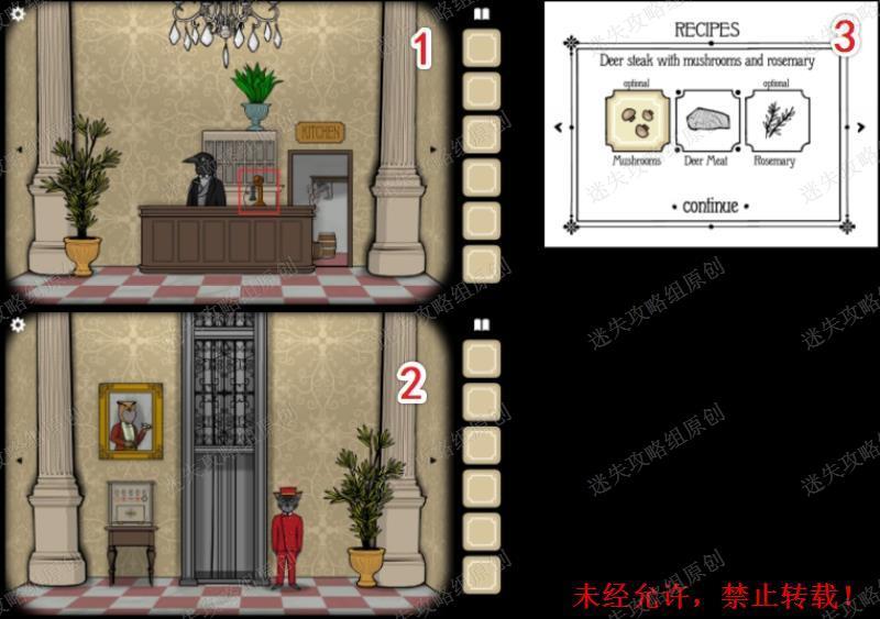 25、去前台处,进入通往厨房的门。点击青蛙,给他三样食物。完成后三星通关。25