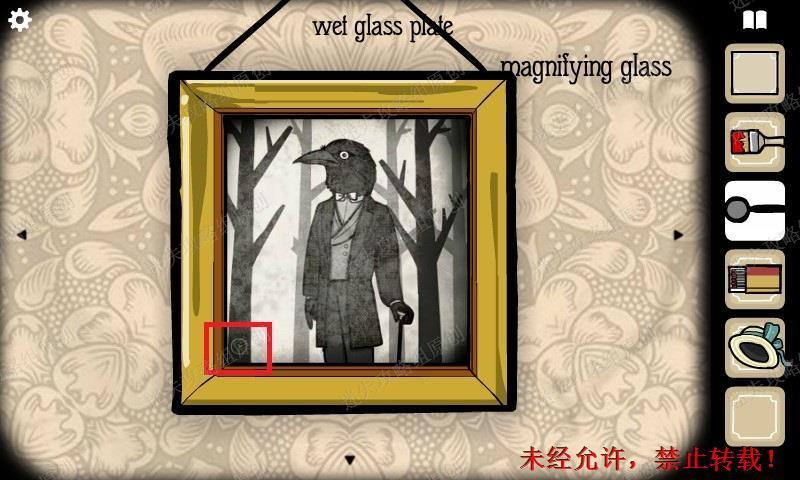 56、依照下图,刷好背景,戴上面具。去拍照。需要注意的是,要先放入湿版,然后拍照。最后得到乌鸦先生的照片,放到随便哪个相框里。531、56