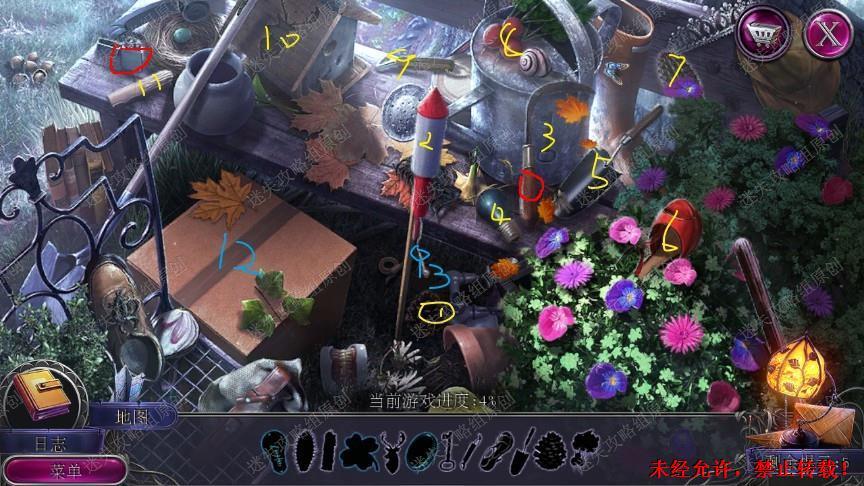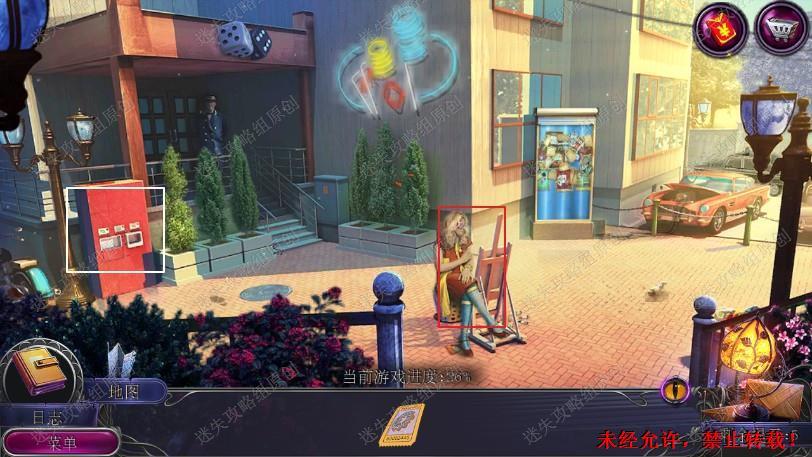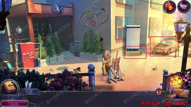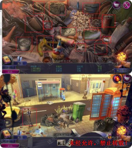 37.点击中间草丛需要除草剂,回到街上点击药店,完成寻物小游戏,拿到除草剂,回到后巷对着草丛使用除草剂,完成游戏(就左边放一个右边放一个很简单),用棒球把钩子砸下来,钩子和绳子组合成绳钩。
