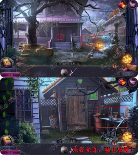 4.回到后院,把伞柄放入右边桌子,转动门环,拿到螺丝刀。(有人在房子里,有点诡异哦),点击左边小屋门,用螺丝刀开始寻物游戏,拿到撬棍。