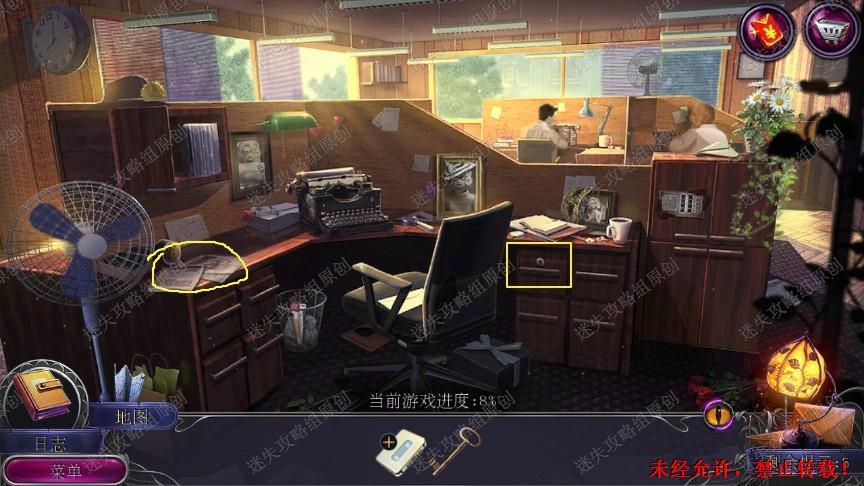 12.来到芭芭拉的办公室,把记者证交给同事拿到钥匙,用钥匙打开抽屉,拿到播放按钮以及刀刃,点击办公桌左角拿到刀柄和刀刃合成美工刀。