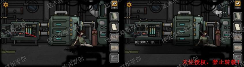 32.回到另一个卧室里,把纸团放入日记本中,获得信息,回到下方机房中,根据机房操作手册上的线索,关闭阀门(纸上的意思是一个轴的转动四次以此类推)。