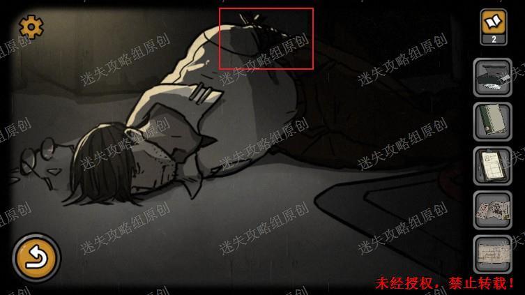 35.回到两具尸体的杂物间在右边的尸体上,点击捆绑的手臂,拿到旺达的铭牌,数字被血液遮住了。