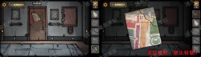 21.我们回到外面张贴海报的房间,根据刚刚的线索如图位置点击,使用撬棍,获得手枪。