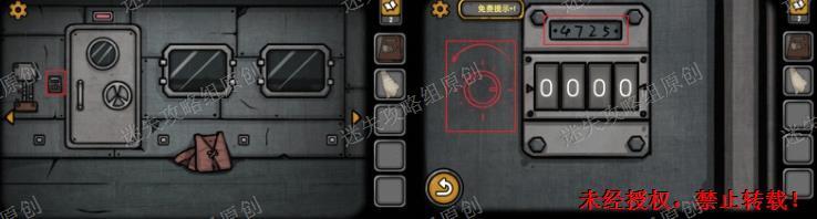 5.有电之后往左切换场景,在舱门左边看到密码输入器,获得提示4725以及逆时针旋转的线索(密码每个人看到的可能不一样记住就行了)。