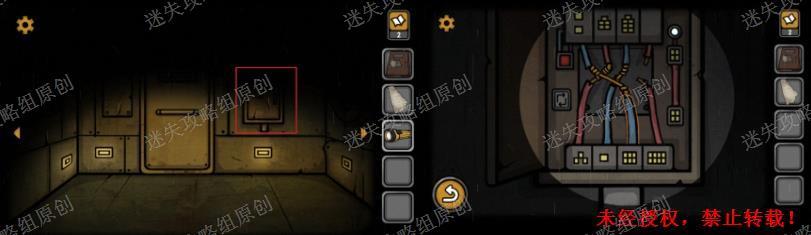 4.来到电箱室,打开电箱,使用手电筒,完成电箱的游戏(上下相加为8),接通电源。