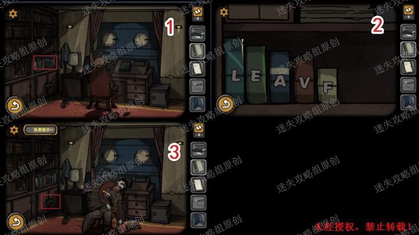 44.点击船长室左侧的书柜,将书本由高到低排列,获得密码LEAVF(每个人不一定一样)点击下方柜子输入密码,获得船长的日记。