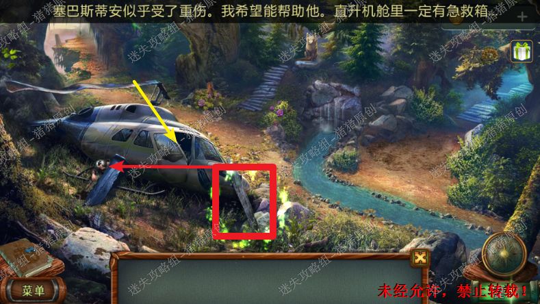 1.游戏开始,飞机坠落,我们在飞机头处拿到一块木板,使用这块木板切撬开压在伤员的板子,并根据黄色箭头我们去直升机驾驶舱找到消毒水和绷带,合成消毒水绷带之后给飞行员擦拭脑袋,观看剧情拿到刀片。1.1