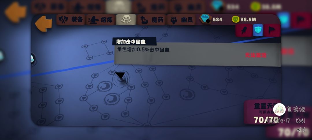 首提到一个开关魔法是每秒1%生命,也就是俩击中回血可以提供一个开关魔法的运行,如果有火甲,击中回血的效率还可以翻一翻,然后是悬浮刃核心