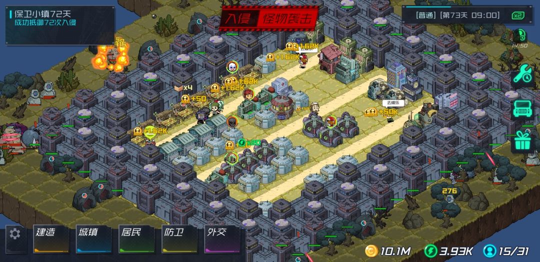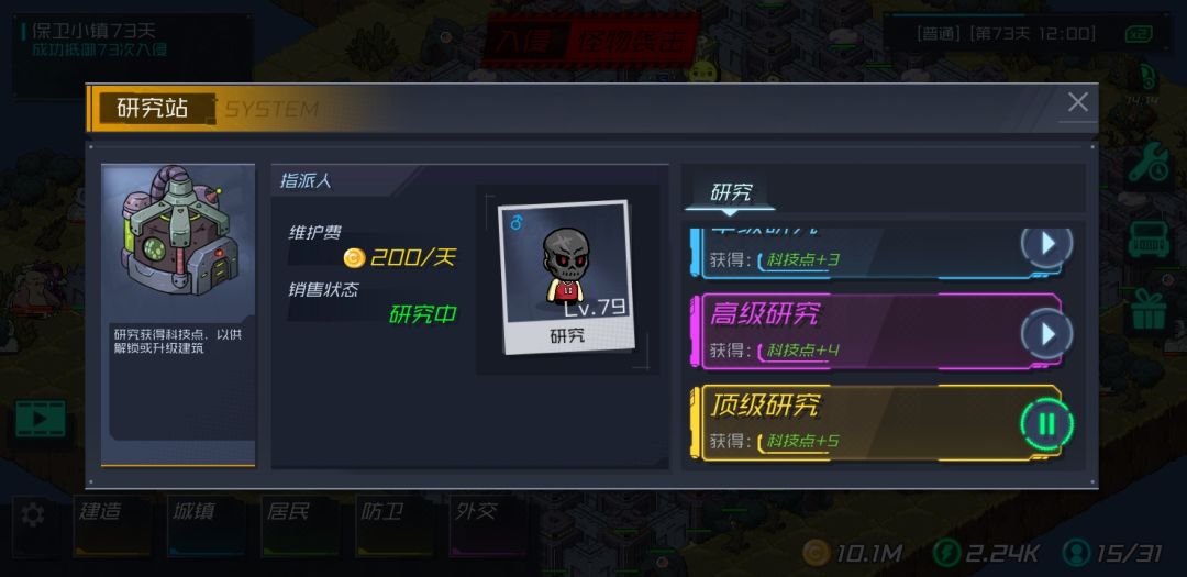 前期把人的装备点满,然后放塔满满升级,等防御上去了,把口堵住,然后食物药物娱乐必需品多制造,把研究建筑建满,靠科技点升级防御塔来守城