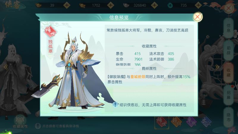 2、已结识的侠客再次获得时,会自动转换成定的侠客 信物