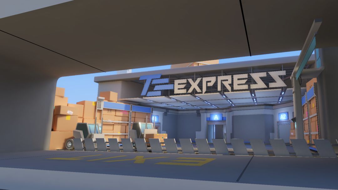 「速运中心」这张地图是T纪元货运机构中的一个站点,设计灵感来源于亚马逊的智能物流工厂。漂浮在天空中的大货运箱里面,是T纪元居民们从世界各地买来的货物,小快递盒会从货运箱中掉落到这个速运中心的传送带上,经过智能分拣后送往各地。