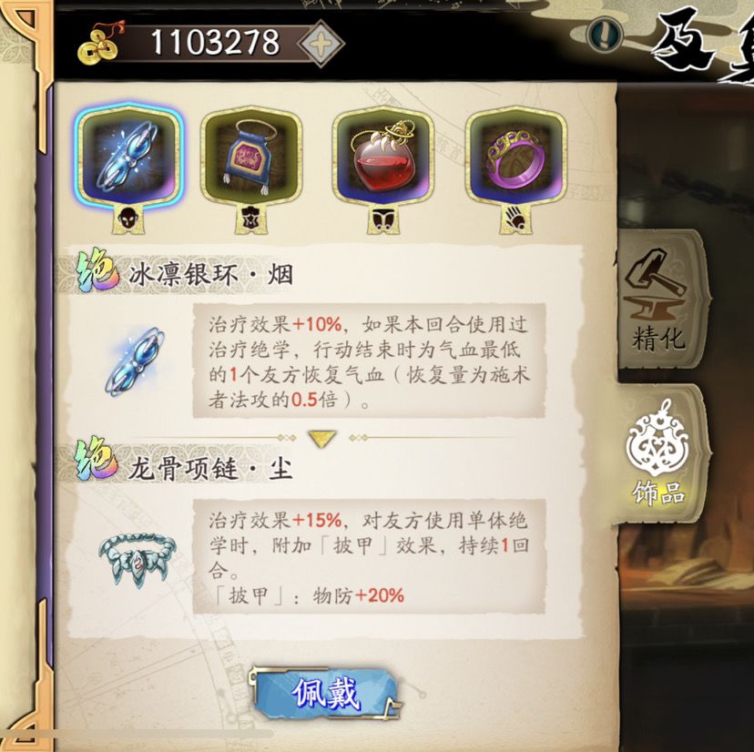 目前治疗当之无愧最强的头饰还是 冰凛银环·烟。