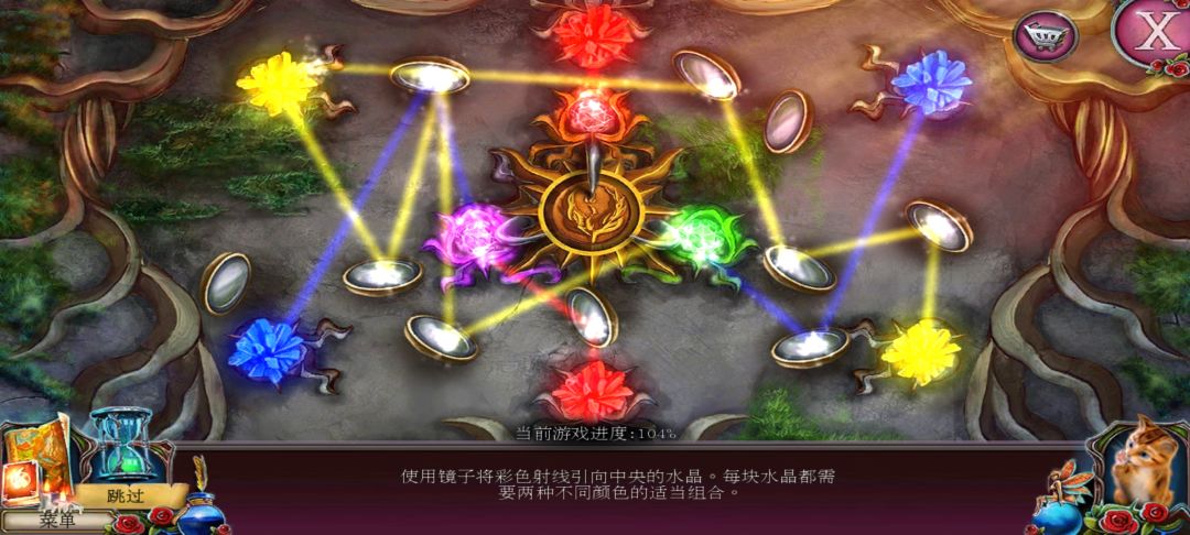 为什么上边的红水晶能够完美避过所有黄线的照射??已经试了五种方法了😭😭😭😭😭有哪位大佬知道怎么样解决?