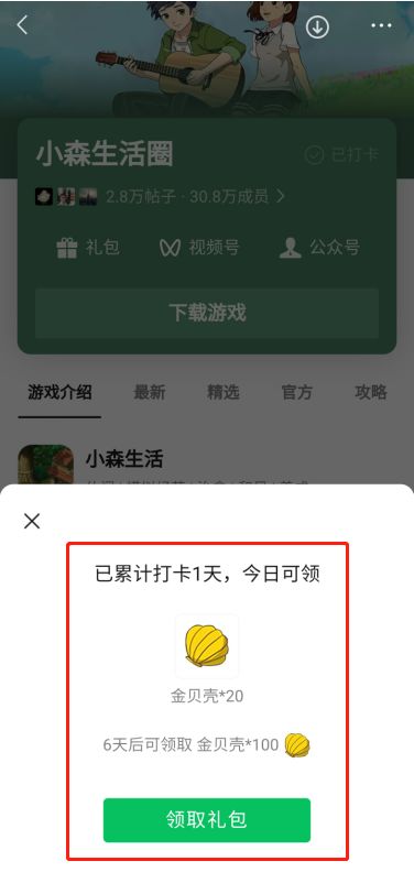 操作步骤:微信-发现页-游戏-游戏圈-小森生活圈-右上角打卡