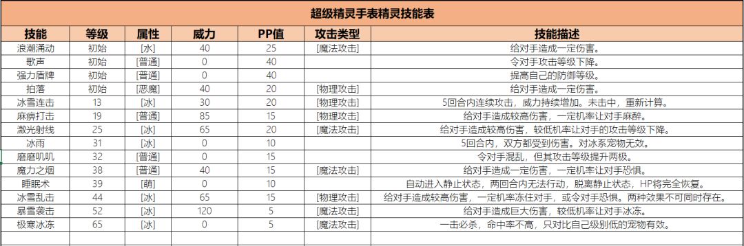 精灵解析:普通野生精灵,整体种族值一般,技能优秀有120大招以及秒杀神技,这么萌难道不练一手吗?