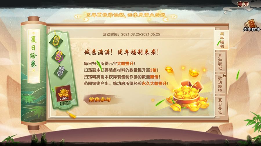 从年初开始进行的四季绘卷·十周年系列回馈,18日开启夏日绘卷第三篇章,根据活动页面要求参与活动可点亮“回馈”令牌。同时点亮绘卷中的三个令牌可领取夏日绘卷最终奖励。