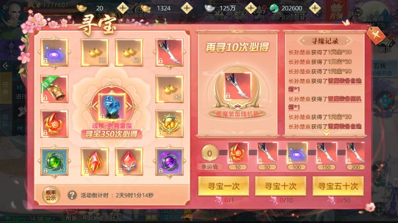 2、一次抽奖消耗一块花簇令,花簇令可通过元宝购买;
