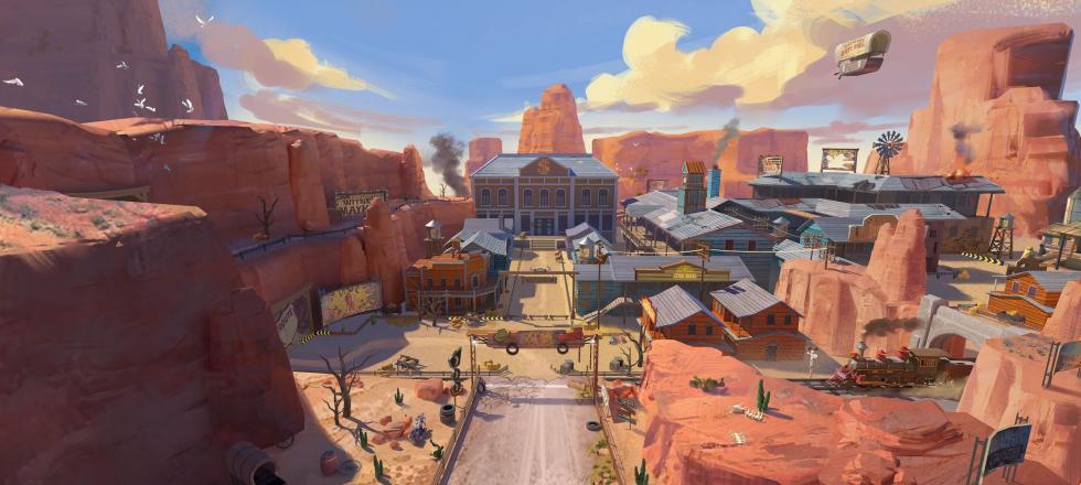 「西部劫案」赛道的原画设定图中包括:
