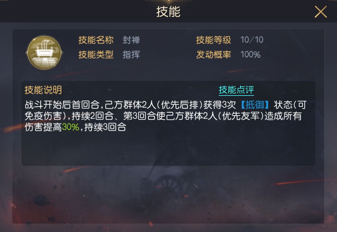 后手队的核心在于后期爆发,但前期缺乏输出,无法有效削减敌方兵力,会导致我方一直承受敌方满兵伤害,为了降低战斗前期的战损,搭配一些带有援护、抵御、免疫的将领能有效降低承伤,所以选择嬴政这名兼并抵御施加与增伤的将领。