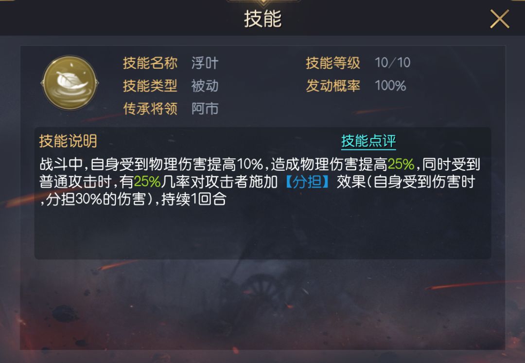 三技能推荐浮叶,该技能可提升成吉思汗的物理伤害,并在受到普攻时有几率触发分担,该效果可无视其自带技能的限制,以分担的方式对敌方造成伤害。