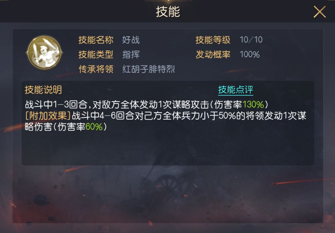 二技能推荐好战,可在前3回合必定发动3次AOE攻击,能有效降低敌方兵力,从而降低敌方造成的伤害,并为队伍补充一定的伤害。附加效果影响不大,由于忠诚护卫的存在,大概率会选择非核心的克努特大帝。