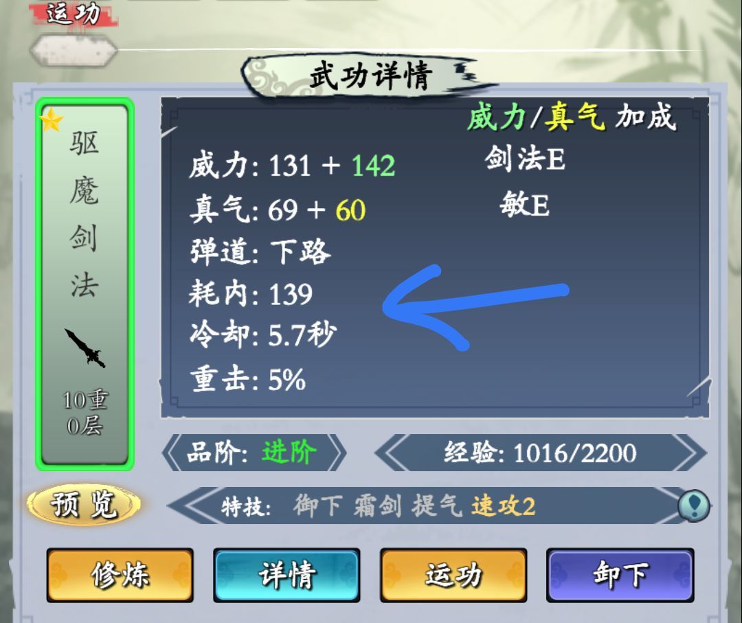 这游戏并不是一堆高品质武功就一定好用,更需要合理搭配。 搭配1:剑+指腿 选一两个剑技能做输出(橙品质的九剑最好,醉仙也不错),绿色技能的驱魔剑法和白色品质的附魔剑cd短,加速其他技能冷却很有用,再选择增加对面冷却时间指腿技能(黑山指或灵犀指)……