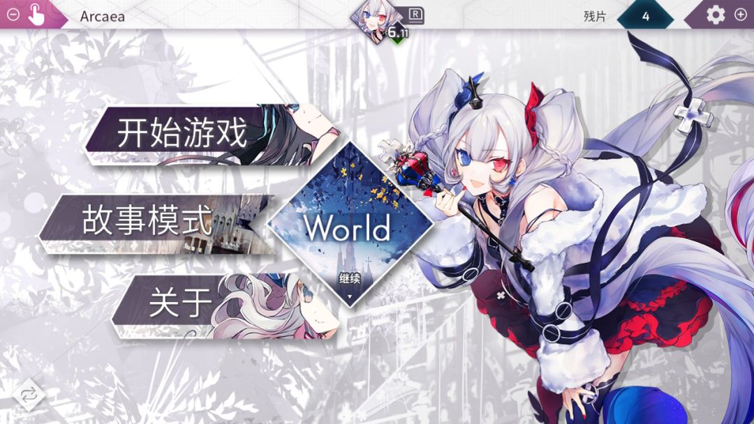 如你所见,游戏主界面就有了一些改动。首先是左上角显示的是当前的操作模式(两种操作模式不可同时使用),没有用户名,但ptt被保留了下来。记忆源点被取消(因为不能买曲包),设置按钮被赶到了右上角。