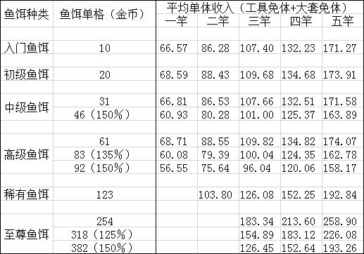 鱼虫贝收益(1-5星工具)一丢丢估算