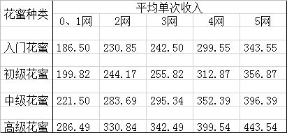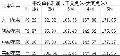 花蜜价格按照集市购买兑换计算,平均单次利润为: