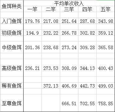 因为贝类挂机不涉及成本问题,所以平均单次收入及利润汇总如下: