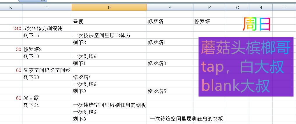 活动的体力说明按照我4月份发的就行。就当给萌新的福利了,我重新发一下。老手应该都会自己计算了。😃😃😃
