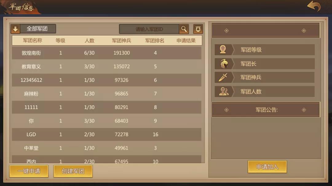 对于还没有加入军团的小伙伴,这次军团申请界面也做了大量的优化。