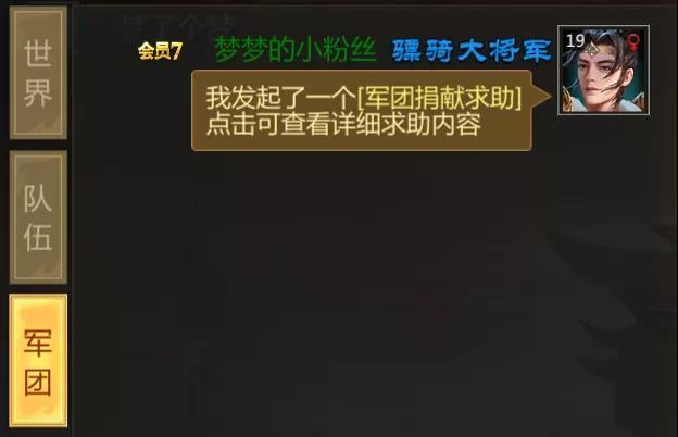 求助后会将该求助发送到军团聊天频道中,其他军团成员点击即可进行查看。