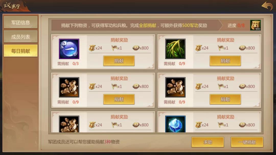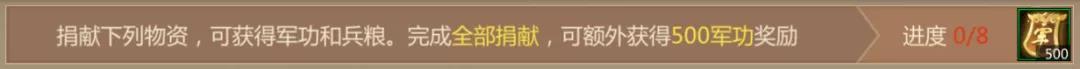 除此之外,当每日完成全部的8个捐献后,还能够额外获得军功奖励。