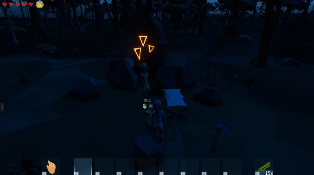 我也非常小心翼翼。但,没过多久我就在远方看到了三个散发着暗淡光芒的三角形图标,