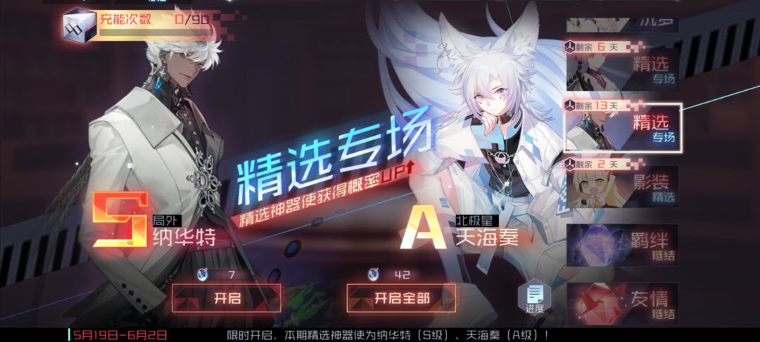 5月19日维护后至6月2日早7:00:纳华特(S级)、天海奏(A级)概率UP