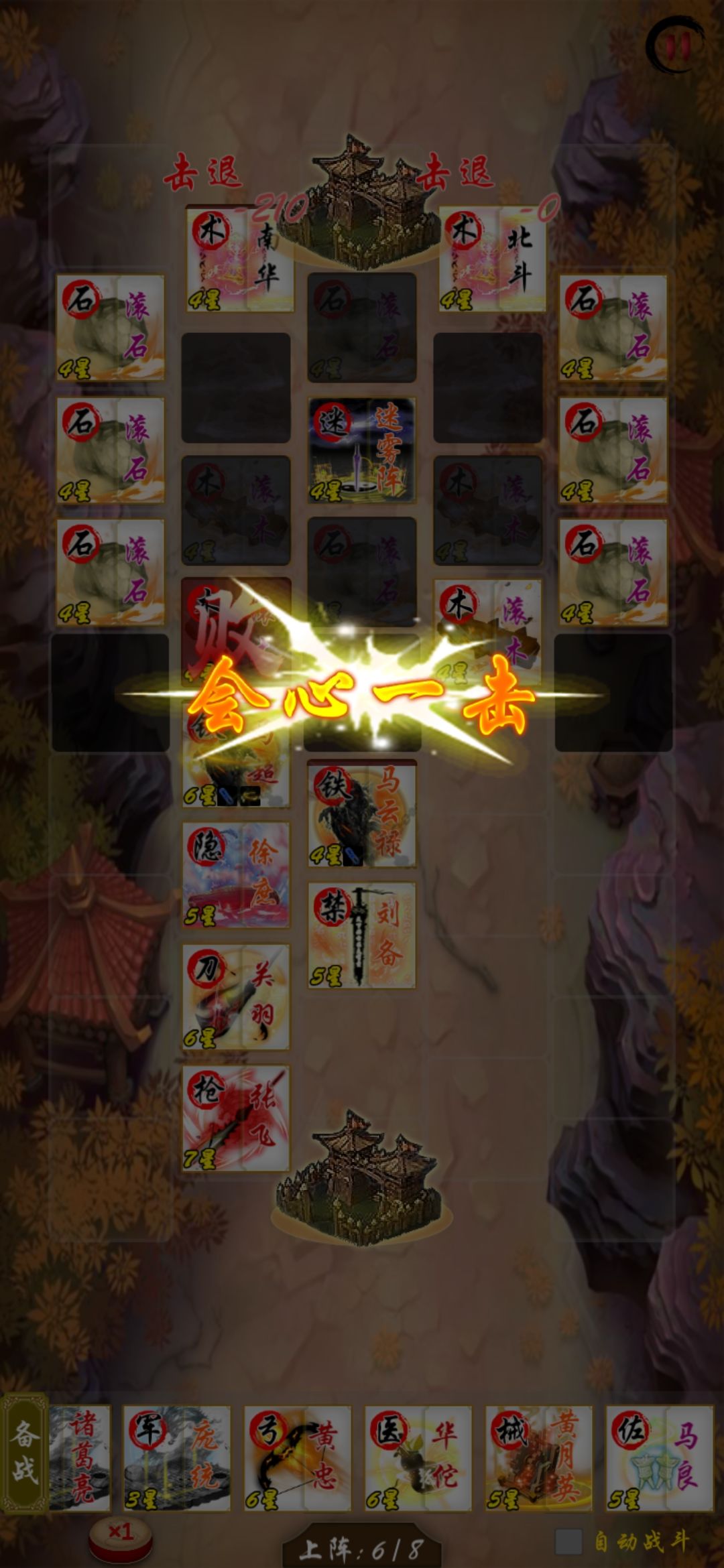 所以针对黑将南华北斗,最有效的武将,如下图所示,就是徐庶,可以精准从陷阱+迷雾阵中把两个黑术士直接推出来。给远程创造更多的击杀机会。