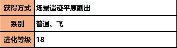 精灵解析:普通野生精灵,整体种族值偏低速度还可以。没有大威力技能,只有个看得过去的提速技能,或许双打有用。不推荐。