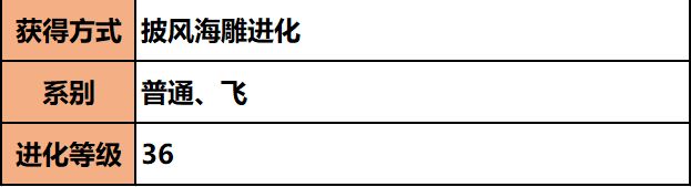 精灵解析:普通野生精灵,整体种族值偏低速度还可以。没有大威力技能,只有个看得过去的提速技能,或许双打有用。不推荐。