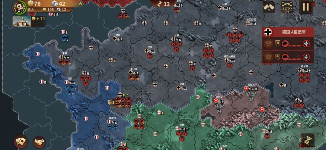如题,13回合法国两个军团加起来只剩10块地左右,我才推到柏林就被打回来了,这还有的打吗