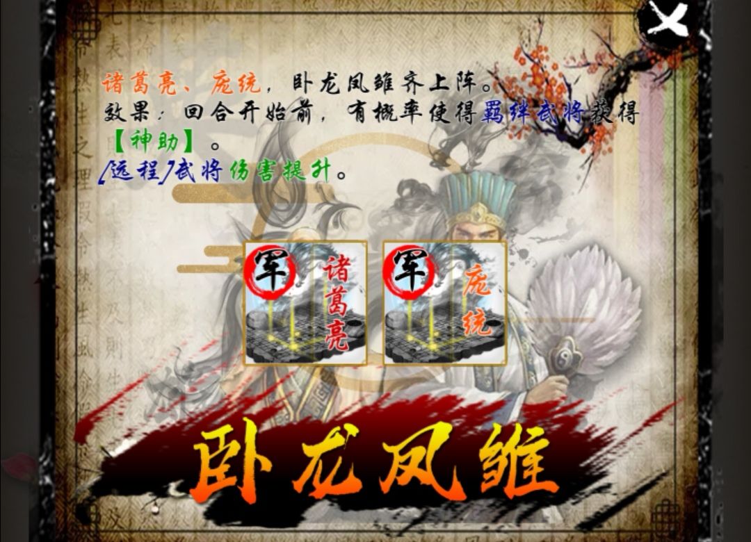诸葛亮和庞统我就不说了 ,你值得拥有,这里说徐庶,遇上一些特定npc,徐庶的击退有奇效,比如陷阵,敢死,南华北斗等等。