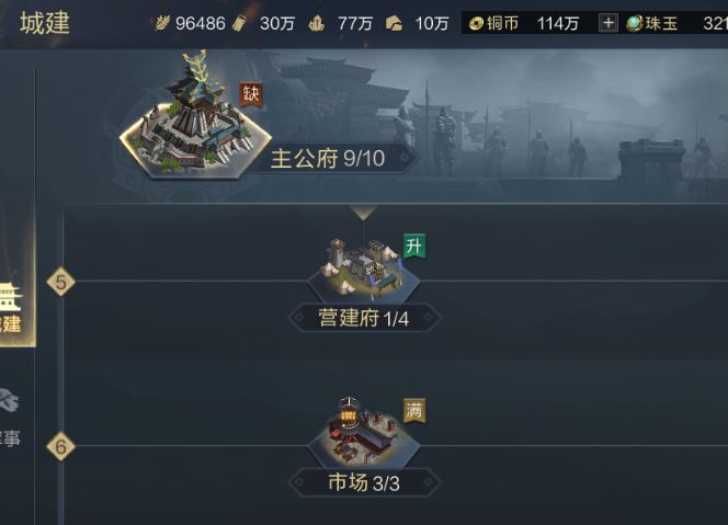 1、市场玩法在主公府8级之后可以通过建造市场解锁,解锁之后玩家可以将自己仓库中多余的资源转化成缺少的资源。