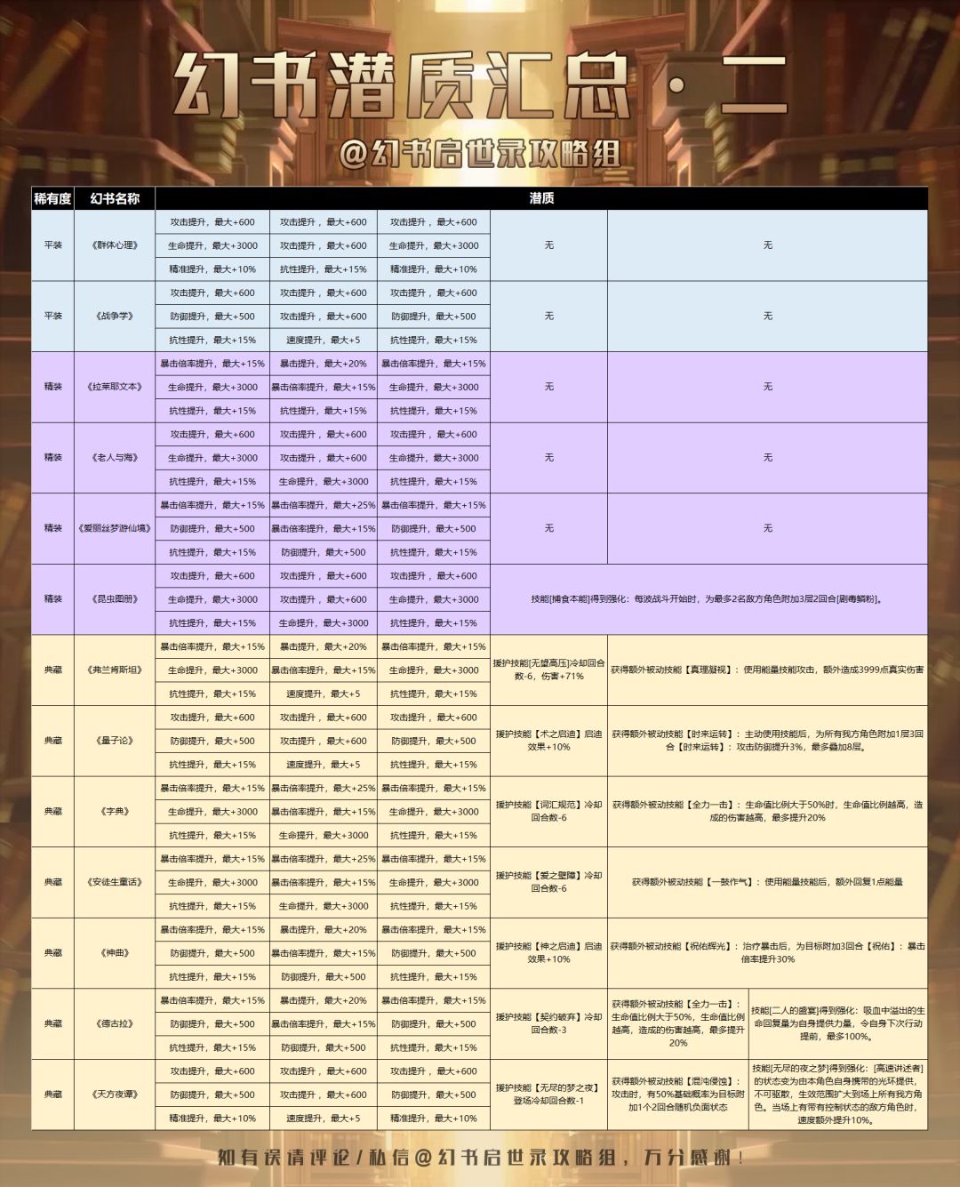 幻书潜质汇总(5月20日)