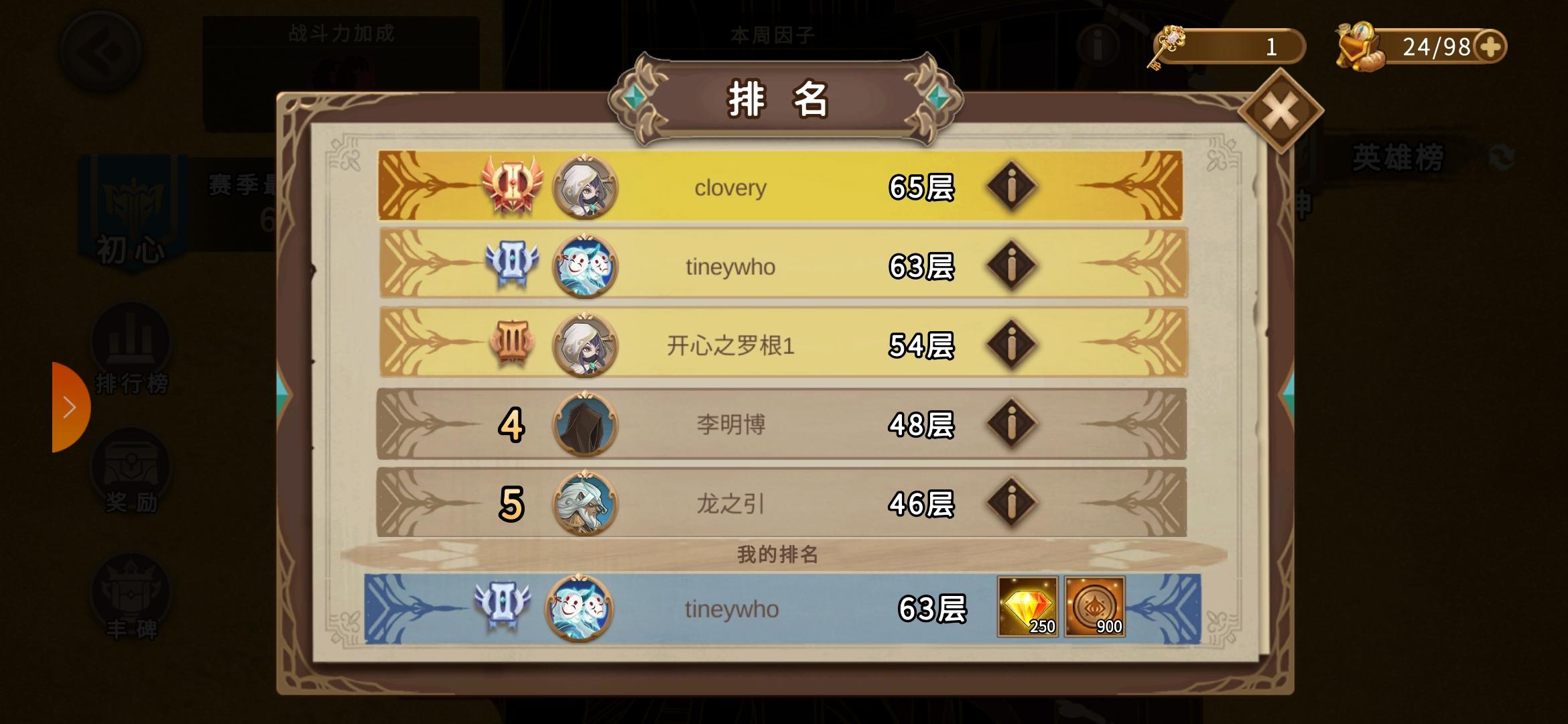 无限要塞64层出bug了,就差一层就追上第一了啊!!我好急!!!